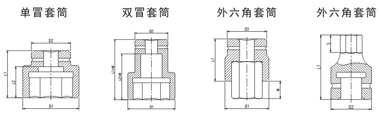 • 驅動型套筒—驅動扭矩扳手套筒單冒套筒雙冒套筒六角套筒